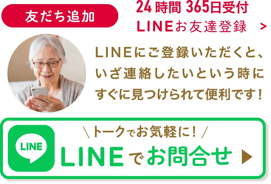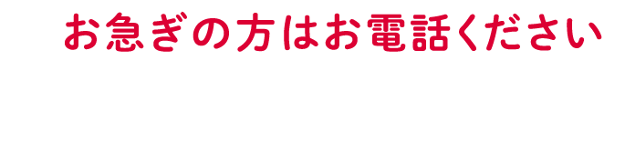 LINE公式でのお問い合わせが便利です。お急ぎの方はお電話にてお問い合わせください。